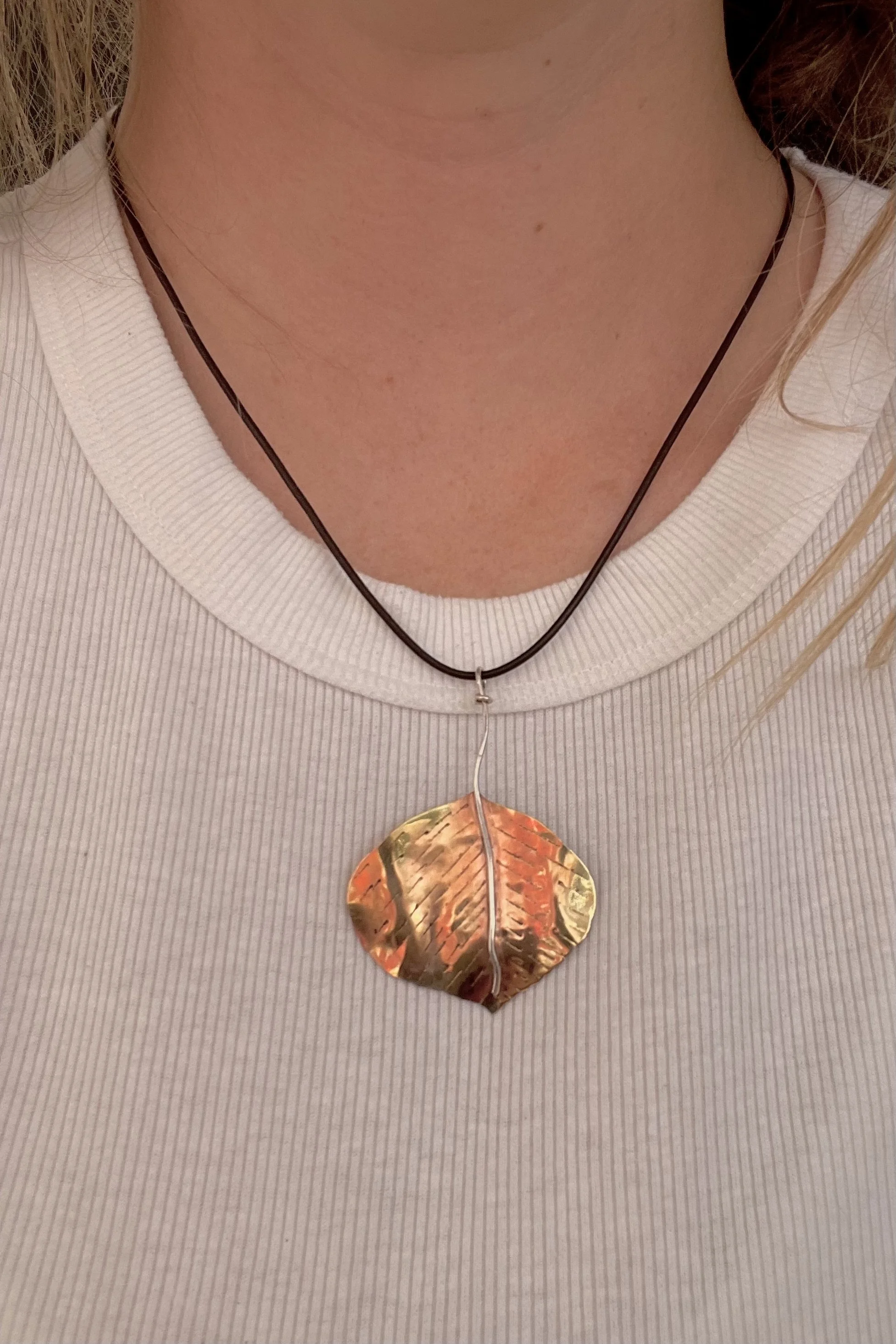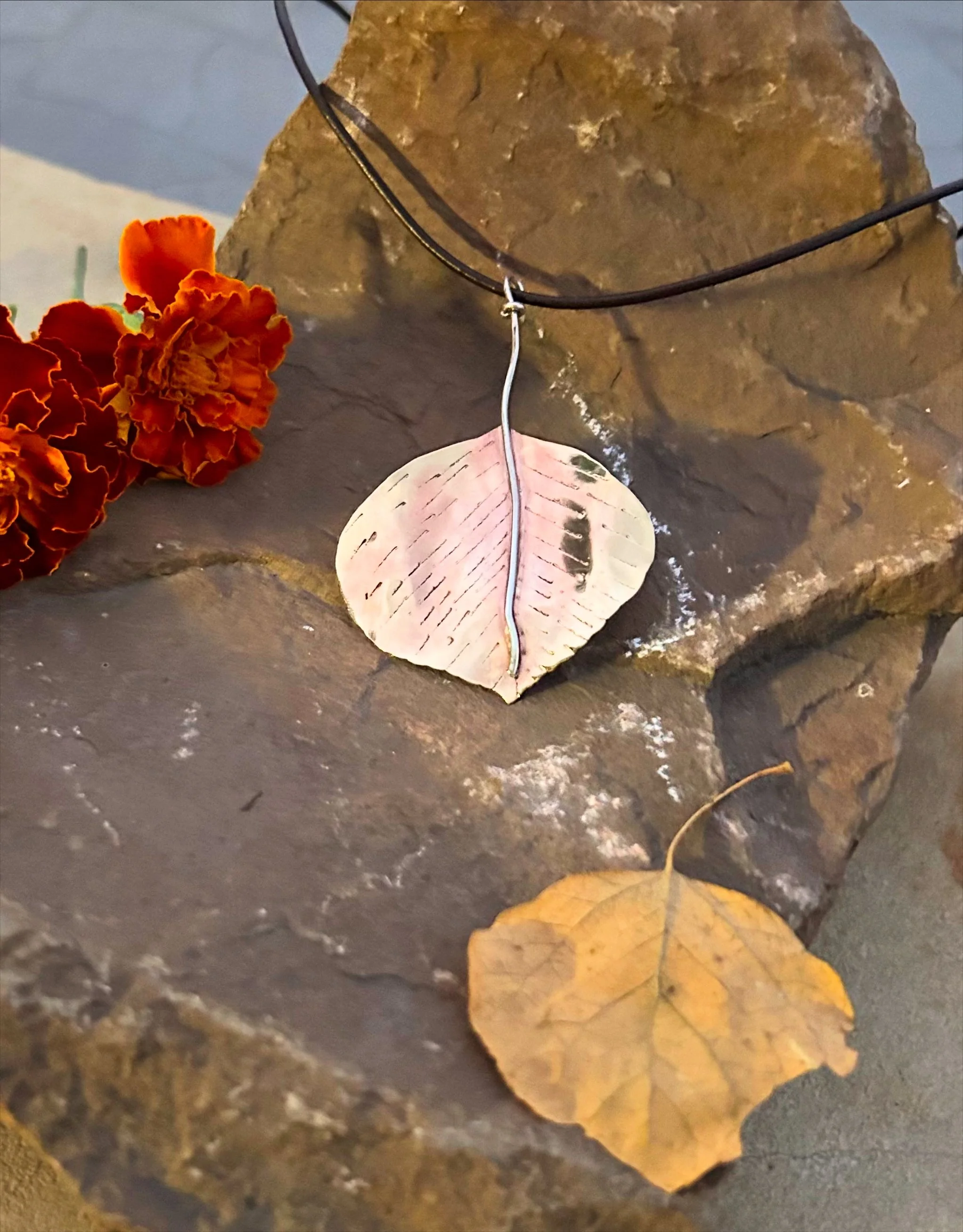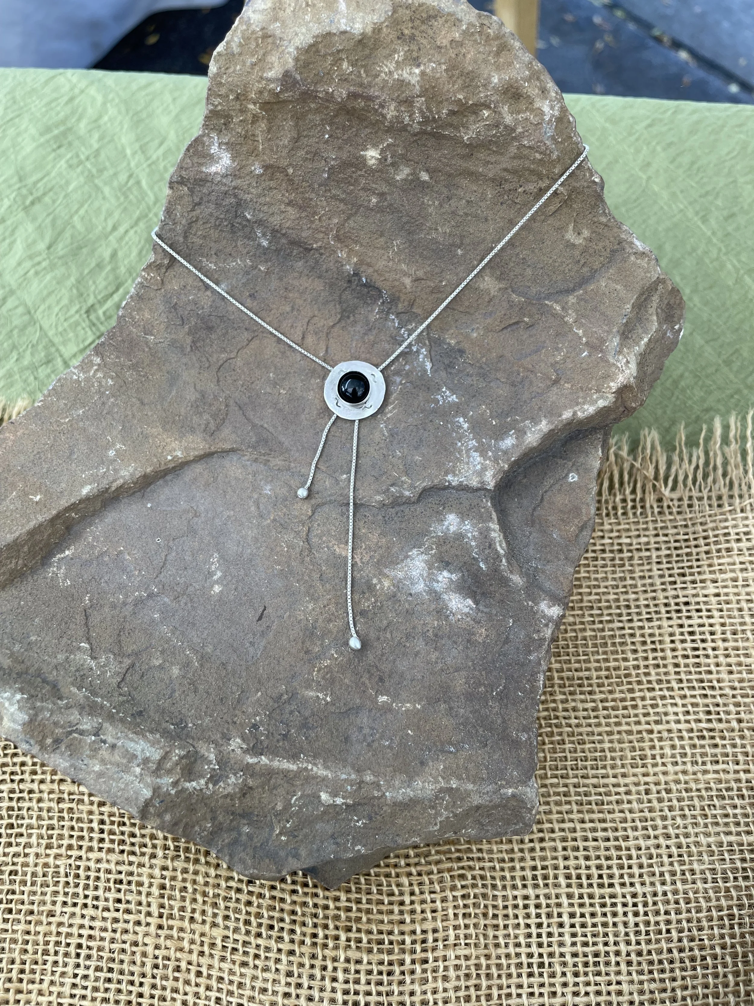 Sterling Silver wire hammered and soldered to create a unique statement piece. A white freshwater pearl accents finishes the design.